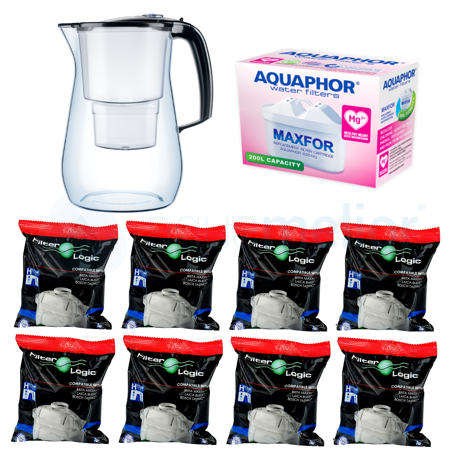 Aquaphor Onyx Czarny Dzbanek do wody 4,2L filtr 1 szt B25 Mg+8 szt FilterLogic FL-402H