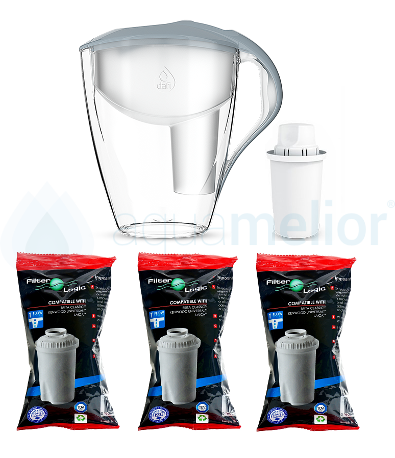 Dafi ASTRA MI 3,0L STALOWY Dzbanek do wody filtr 1 szt Classic + 3 szt FilterLogic FL-601G