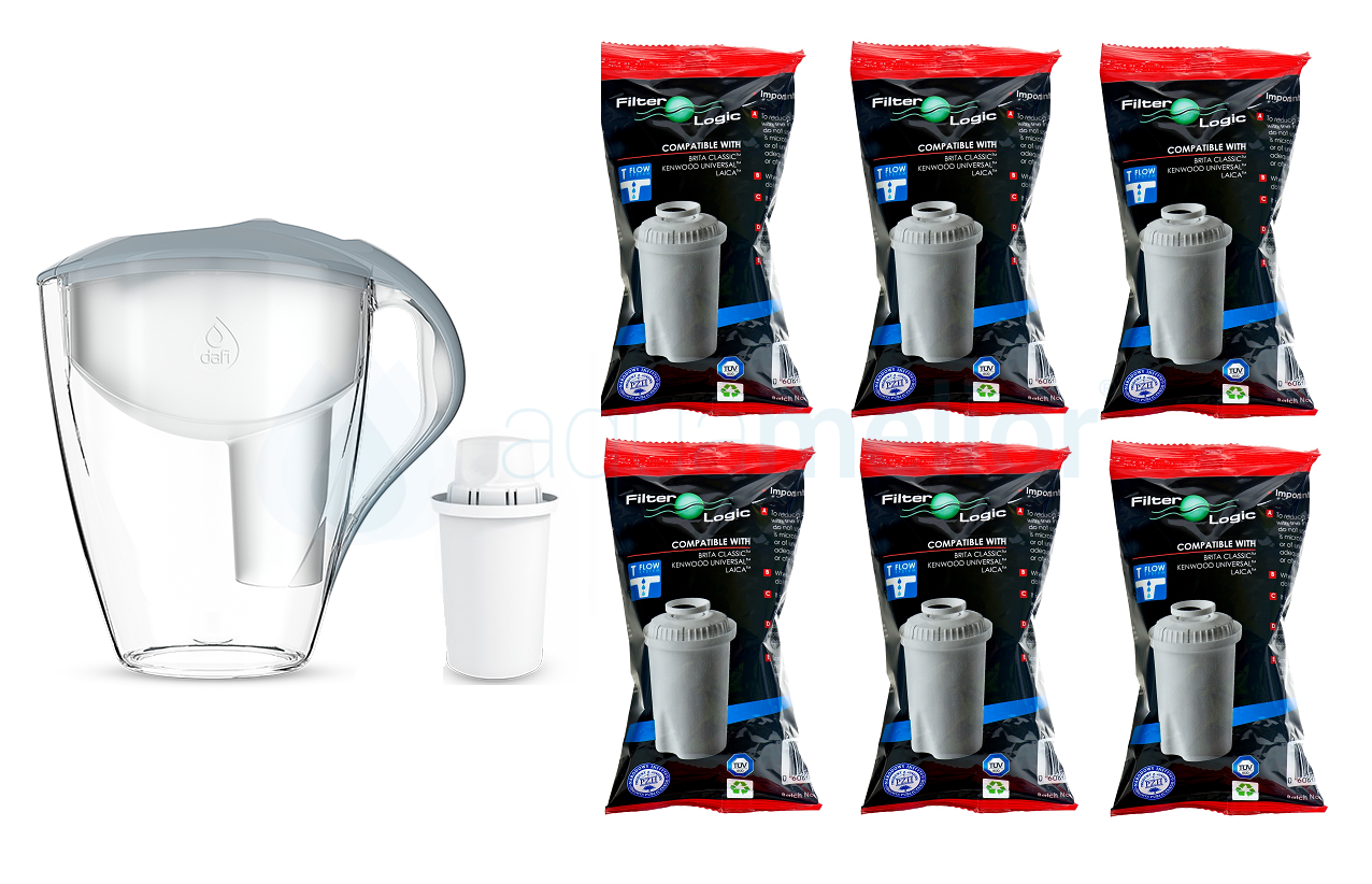 Dafi ASTRA MI 3,0 L STALOWY Dzbanek do wody filtr 1 szt Classic + 6 szt. FilterLogic FL-601G