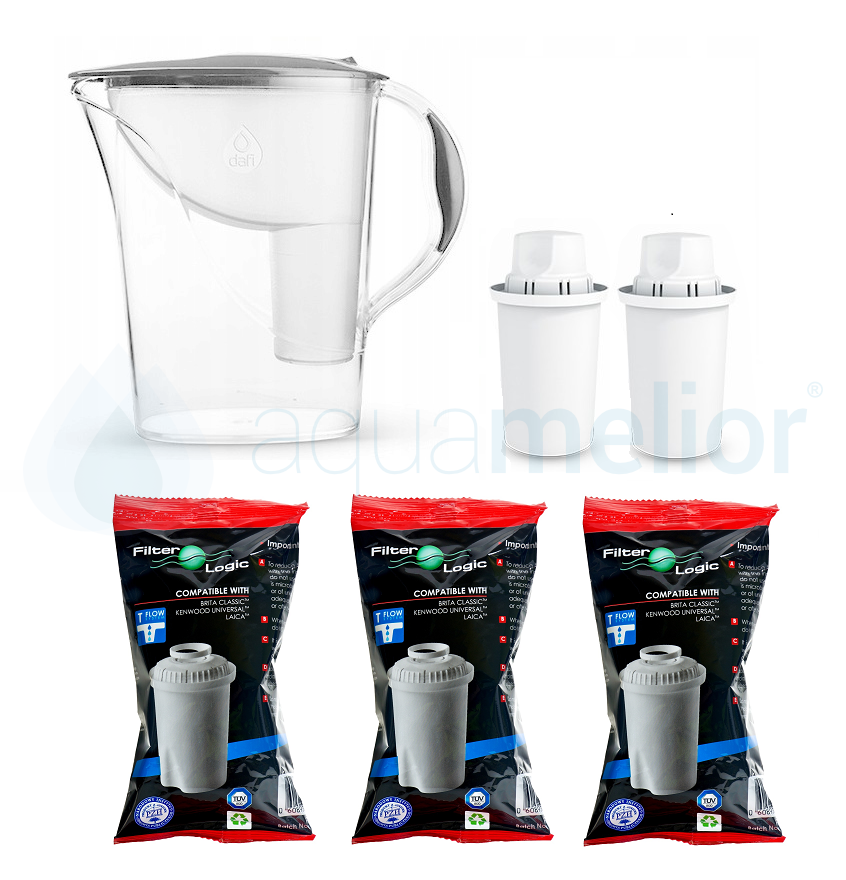 Dzbanek jest przeznaczony do użytku domowego, choć sprawdzi się także w szkołach oraz biurach. Jego pojemności wynosi 2,4 L, natomiast pojemność wody przefiltrowanej to 1,2 L. Można go myć w zmywarce, co znacznie ułatwia korzystanie z niego. Jego ergonomiczny kształt wpływa pozytywnie na wygodę użytkowania. Sprawdź pozostałe produkty, dostępne w ofercie naszego sklepu aquamelior.pl. W komplecie z dzbankiem filtrującym oferujemy dwa filtry Classic oraz trzy filtry FilterLogic FL-601G. Wytajność filtrów to 30 dni uzytkowania lub przefiltrowanie 100-150 litrów wody.