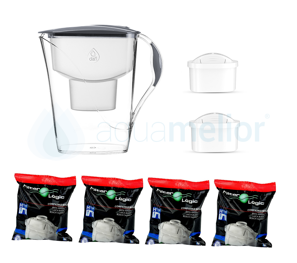 Dafi LUNA 3,3 litra, STALOWY dzbanek do wody z filtrem 2 szt. Unimax + 4 szt. filtrów FilterLogic FL-402H