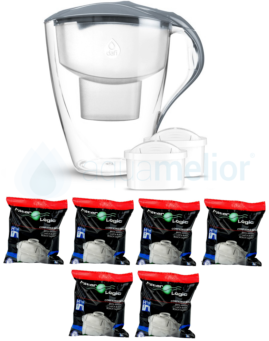 Dafi OMEGA MI 4,0L STALOWY Dzbanek do wody filtr 2 szt. Unimax + 6 szt. FilterLogic FL-402H