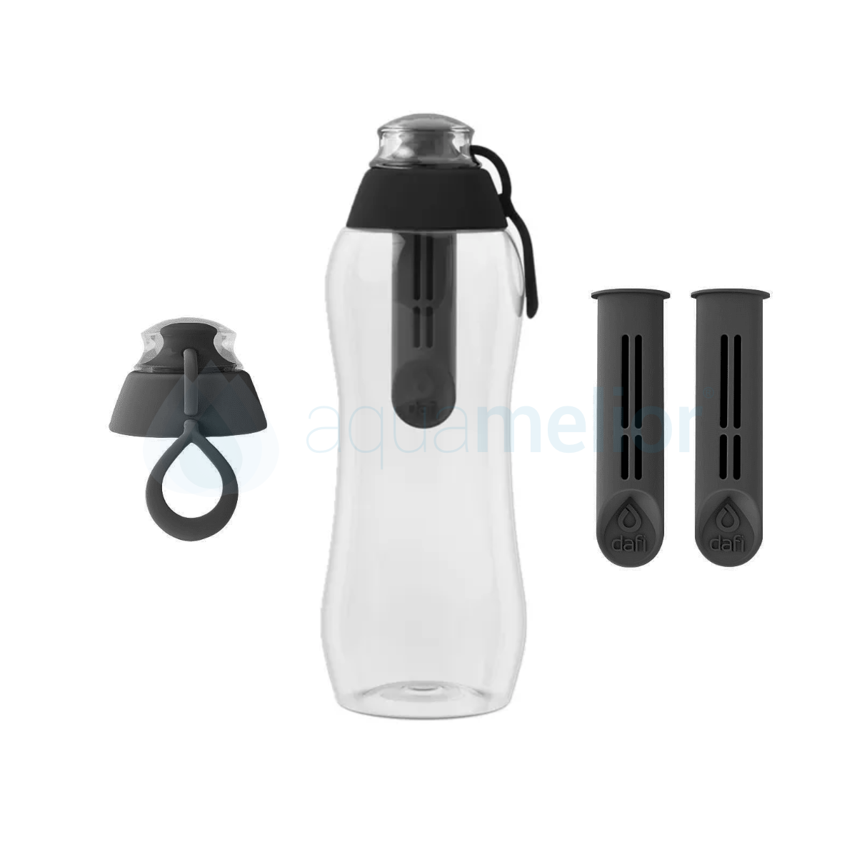 Dafi butelka filtrująca 0,3 l Grafitowa (antracyt) z 2 nakrętkami i 3 filtrami