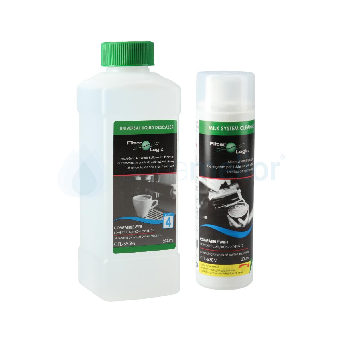 ZESTAW FilterLogic CFL-695 odkamieniacz do ekspresu ciśnieniowego 500 ml + FilterLogic CFL-630 płyn do czyszczenia systemu mleka w ekspresie 200 ml