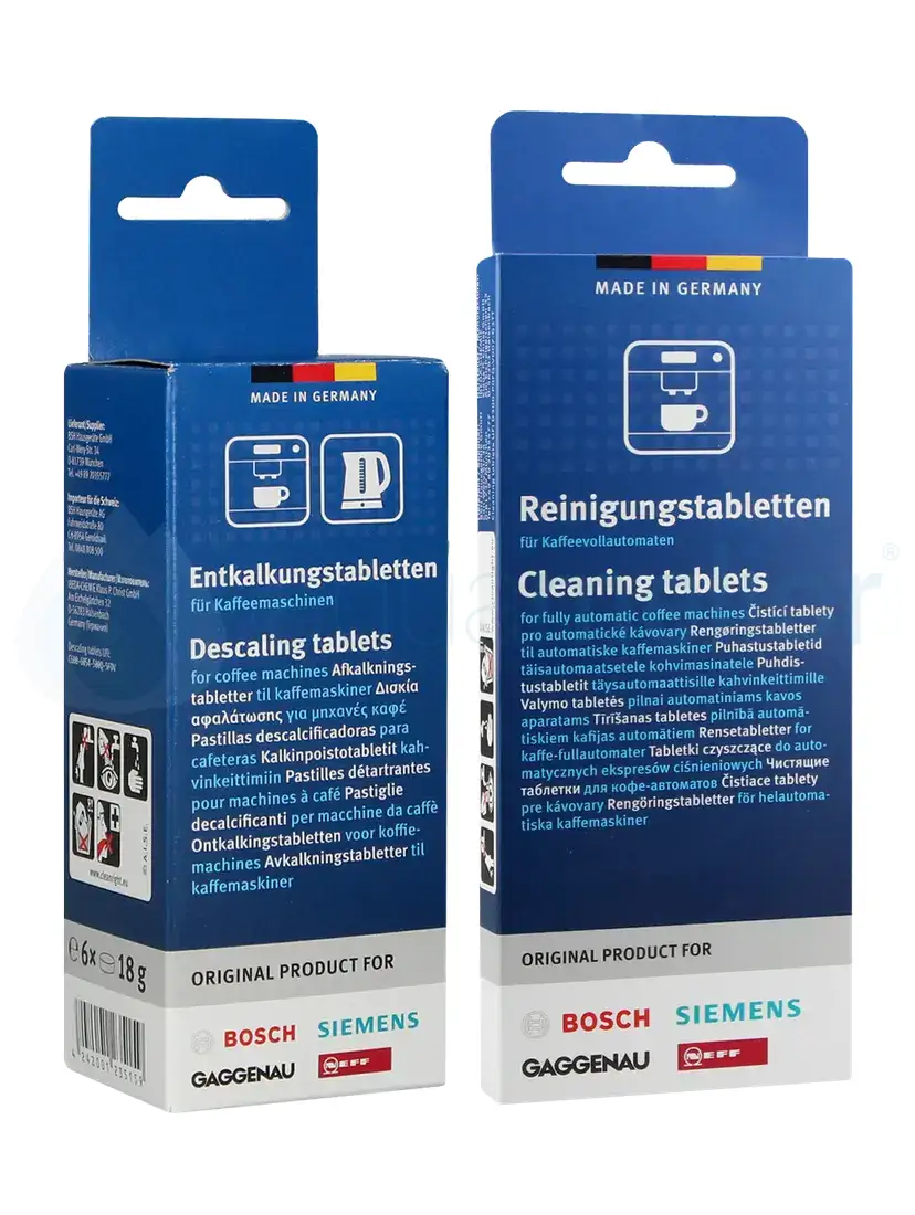 Ekspres do kawy, to urządzenie, które dostępne jest w wielu domach, biurach, punktach usługowych czy przestrzeni publicznej. Dzięki niemu można przygotować wyjątkowy napój w zasadzie dla każdego - pyszne cappuccino, mocne espresso czy cafe latte nie stanowi żadnego problemu. Jeśli jednak sprzęt ma działać długo i bezawaryjnie, konieczne jest użycie specjalistycznych preparatów do ich czyszczenia i konserwacji. Zestaw zawierający tabletki czyszczące i tabletki odkamieniacz Bosch Siemens to produkt idealny dla koneserów kawy pod każdą postacią.