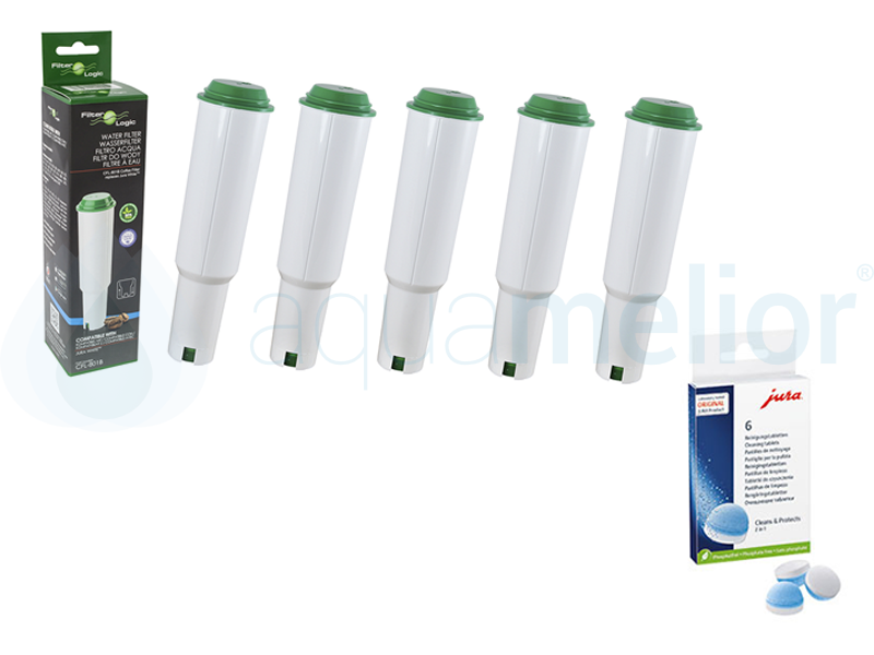 5x Filter Logic CFL-801B Filtr do ekspresu ciśnieniowego Jura Claris White + Jura 62715 Tabletki czyszczące 6 sztuk