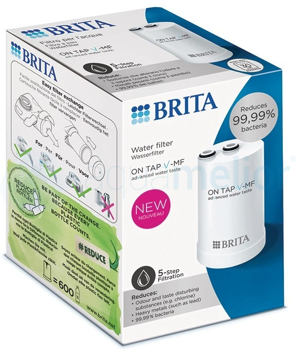 - Wydajność i skuteczność: Ten model filtra BRITA On Tap V MF wyposażony jest w zaawansowany filtr mikrofiltrujący (MF), który skutecznie redukuje substancje organiczne, zanieczyszczenia, nadmiar chloru i kamień, zapewniając optymalną jakość wody do picia i gotowania.