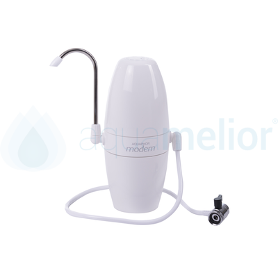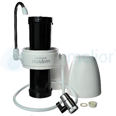 Filtr Aquaphor Modern jest prosty w montażu i nie zajmuje wiele miejsca, dzięki czemu z powodzeniem sprawdzi się w każdej, nawet niewielkiej kuchni - jego instalacja polega na podłączeniu filtra do baterii zlewozmywakowej (w miejsce perlatora) za pomocą dołączonego do zestawu wężyka, który zakończony jest przełącznikiem strumienia wody. Ten ostatni element umożliwia ustawienie strumienia wody na wodę oczyszczoną, nadającą się do spożycia, i na wodę do mycia rąk i naczyń.