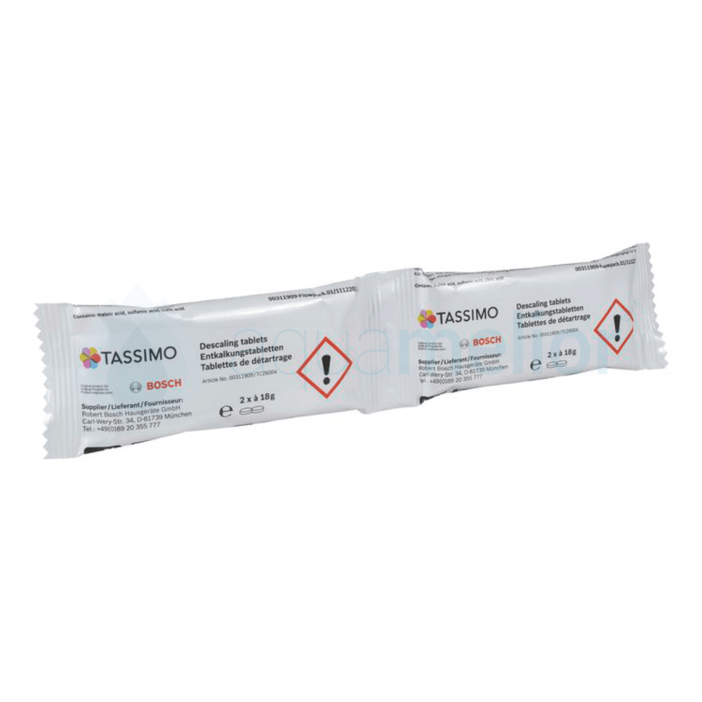 Tabletki odkamieniające Bosch TCZ 6004 311909, to środek do automatycznego programu odkamieniania dla wszystkich ekspresów TASSIMO.