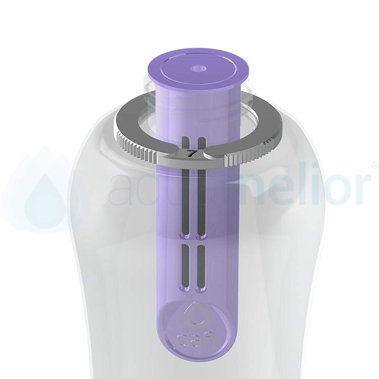 Czy nie łatwiej wypijać codzienną dawkę wody mając przy sobie butelkę, która potrafi uczynić zdatną do picia wodę z kranu w każdym momencie? Na pewno tak. Nie trzeba się martwić czy zdążymy jeszcze zrobić zakupy, ani nosić przy sobie ciężkich 1,5 litrowych butelek. Wbudowany w butelkę filtr wykonany z naturalnego węgla aktywnego pochodzącego z łupin orzecha kokosowego, nadaje wodzie przyjemny smak i usuwa z niej zapach chloru. Przefiltrowana woda jest zmiękczona, ale zachowuje przy tym naturalne pierwiastki, takie jak wapń i magnez. Systematycznie przeprowadzone badania i uzyskane certyfikaty potwierdzają bezpieczeństwo i jakość wody. Wydajny filtr pozwala na przefiltrowanie 150 litrów wody, co odpowiada aż 300 półlitrowym butelkom PET.