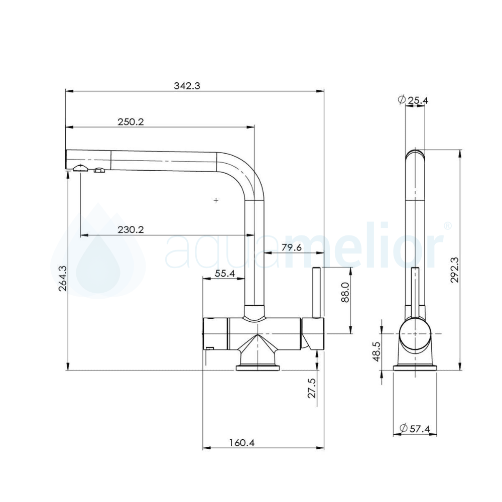 Po zainstalowaniu Dafi Flow Comfort D 3 nie potrzebujemy już żadnych innych akcesoriów filtrujących. Z dedykowanego kranu trójdrożnego płynie woda ciepła, zimna oraz filtrowana. Wszystko w jednej baterii kuchennej. Bateria posiada prosty kształt i jest z chromowanym wykończeniem.