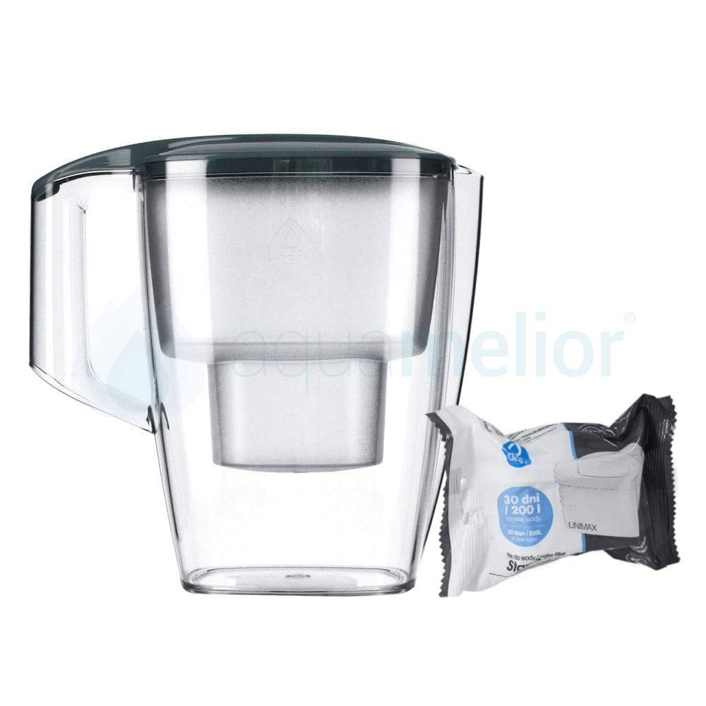 Ten zestaw obejmuje dzbanek Dafi START w kolorze stalowym o pojemności 4 litrów oraz 1 sztukę filtra Dafi Unimax. Jest on kompatybilny z tym modelem dzbanka i wystarczy na około 150 litrów wody lub na 30 dni w zależności od jakości wody. Wskaźnik na dzbanku przypomni Ci o koniecznej wymianie wkładu filtrującego. Zapas filtrów możesz zawsze zamówić w dobrych cenach w Aquamelior.pl.