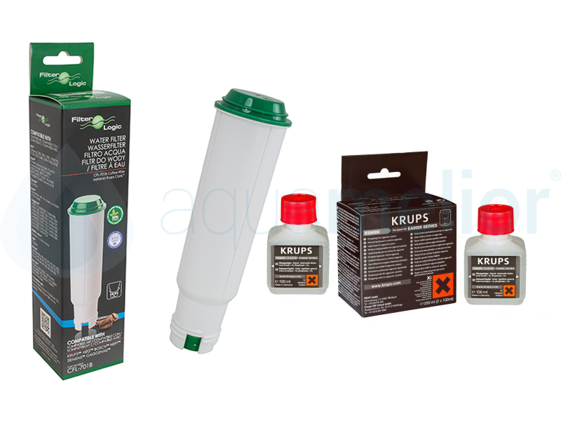 Filter Logic CFL-701 zamiennik Krups F088 + KRUPS XS3000 Tabletki czyszczące do ekspresu ORYGINAŁ 10 sztuk + KRUPS F054 Odkamieniacz do ekspresów ciśnieniowych i czajników 2 saszetki