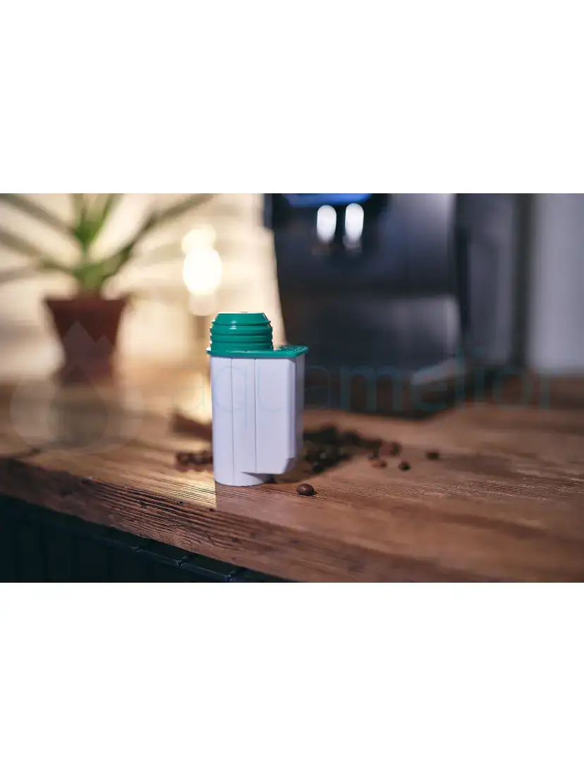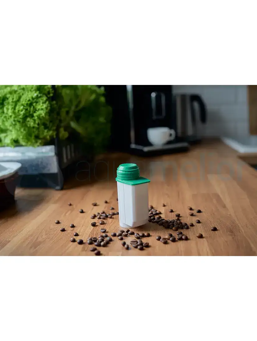Pozbywa się z wody zanieczyszczeń i zapobiega osadzaniu kamienia wewnątrz ekspresu, zwiększając jego żywotność i poprawiając smak kawy.