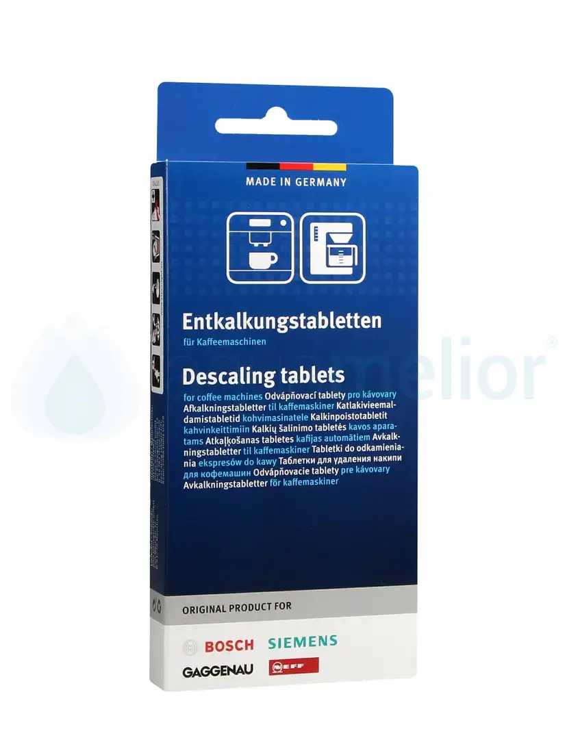 Oryginalne tabletki do odkamieniania automatycznych ekspresów Bosch Siemens TZ8002 (TZ80002, 311819) 2w1 dostępne w nowym opakowaniu. Produkt przeznaczony dla urządzeń serii VeroBar, VeroCafe i EQ.