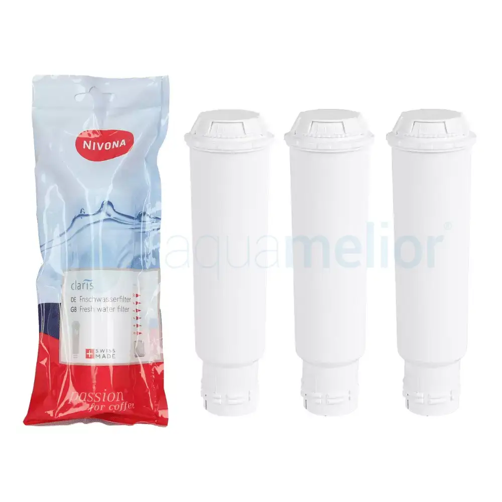 Oryginalne filtry Claris NIRF 700 powstały z myślą o wszystkich ekspresach marki Nivona. Z ich pomocą zarówno ochronisz urządzenie przed tworzeniem się kamienia, jak i zapewnisz sobie lepszy smak i zapach przygotowanego, rozgrzewającego napoju. Odpowiednio zaprojektowane produkty pasują idealnie do każdego modelu producenta, sprawiając, że ich użytkowanie i wymiana stają się prostsze, a zaparzona kawa jeszcze pyszniejsza. Odkryj zalety wkładów filtracyjnych do ekspresów Nivona dostępnych w sklepie internetowym Aquamelior!