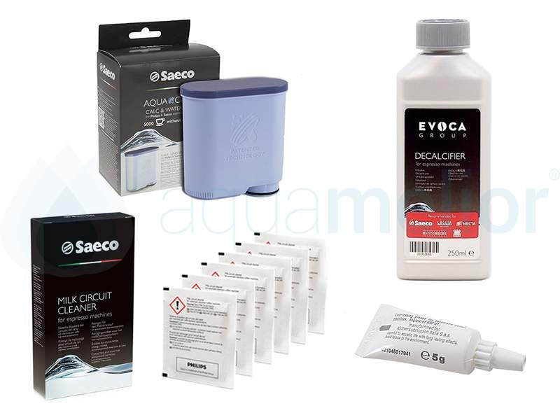 Saeco AquaClean CA6903 Filtr do ekspresu Philips + Saeco CA6700 Odkamieniacz do ekspresów 250ml + Saeco CA6705 Środek do czyszczenia systemu mleka Philips + Saeco HD5061 Smar konserwujący silikonowy