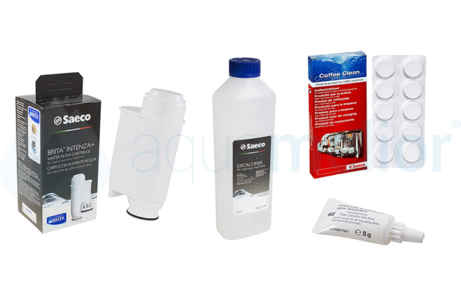 Saeco CA6702/00 Filtr do ekspresu BRITA Intenza+ + Saeco CA6700 (21002351) Odkamieniacz do ekspresów 500ml + Saeco CA6704 (21001883) Tabletki czyszczące 10 tabletek + Saeco HD5061 Smar konserwujący silikonowy