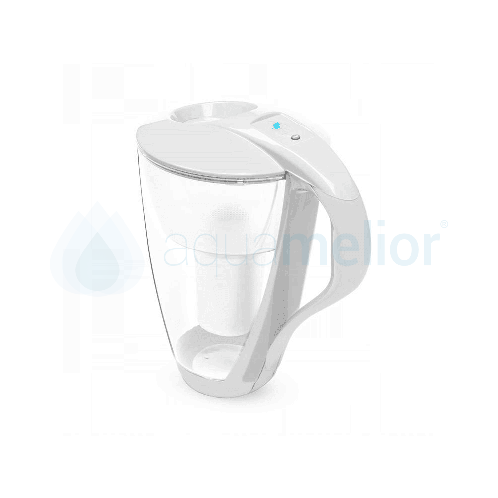 Konstrukcja dzbanka filtrującego Dafi Crystal 2,0l LED White została wykonana z wysokiej jakości materiałów pozwalających na prawidłowe działanie produktu przez długie lata. Stabilne naczynie ze szkła i obudowy w kolorze białym umożliwia bezproblemowe użytkowanie każdego dnia. Ergonomiczna rączka sprawia, że nalewanie cieczy do szklanek lub kubków staje się niezwykle łatwe i nie powoduje niechcianych plam wokół naczyń. W górnej części dzbanka filtrującego umieszczono wskaźnik wraz z diodami, którego zadaniem jest informowanie cię o konieczności wymienienia wkładu. Dzięki temu nigdy nie przegapisz tego momentu i nie dopuścisz do sytuacji, w której zużyty egzemplarz będzie dalej wykorzystywany do oczyszczania wody kranowej w sposób zupełnie nieskuteczny. Ponowne uzupełnienie dzbanka filtrującego o pojemności 2 litrów jest możliwe za pomocą wygodnego wlewu umieszczonego w górnej pokrywce koloru białego. Takie rozwiązanie pozwala na higieniczne napełnienie zbiornika bez obawy o wodę rozlaną po całym kuchennym blacie.