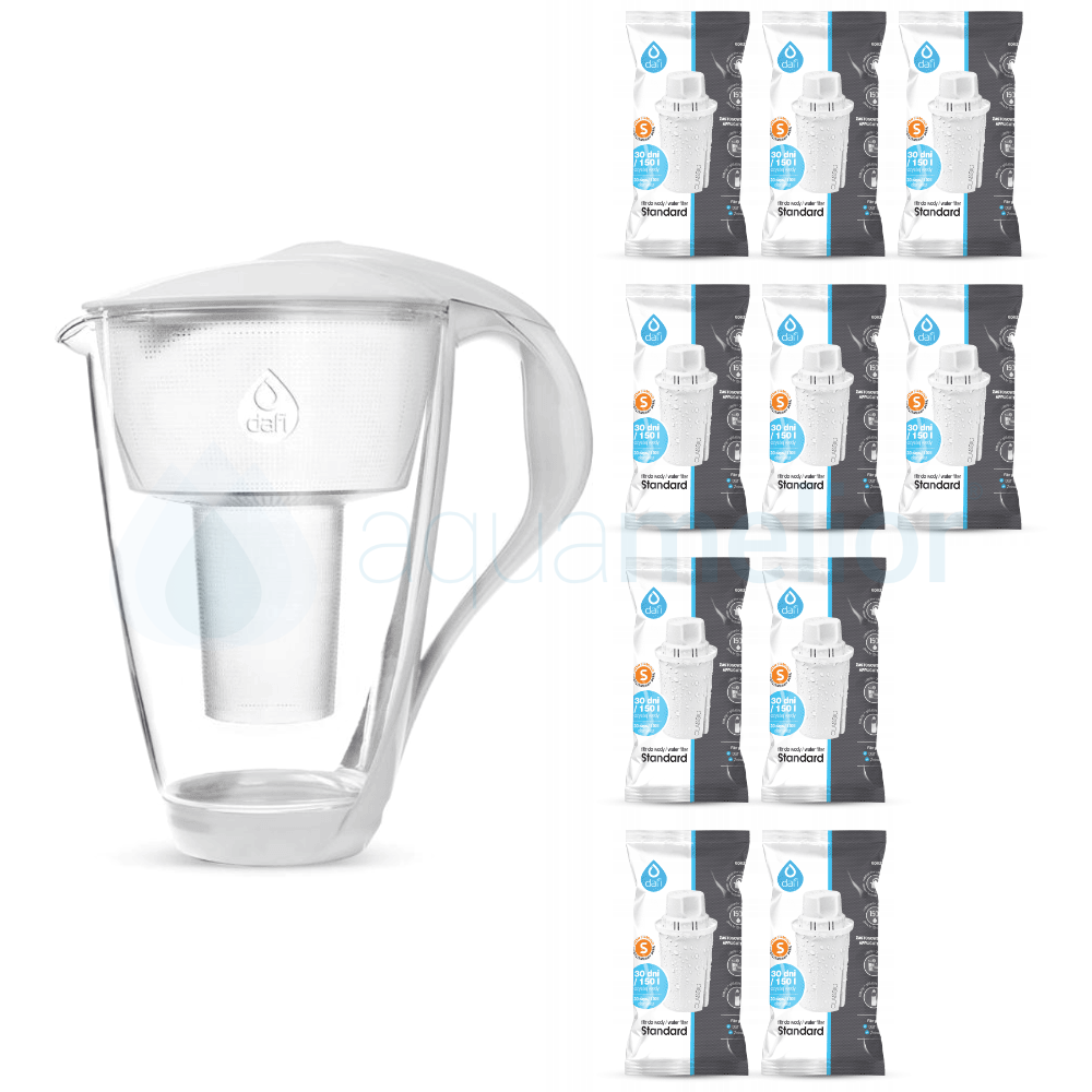 Szklany dzbanek filtrujący Dafi Crystal 2,0 l biały + 10 filtrów Dafi Classic