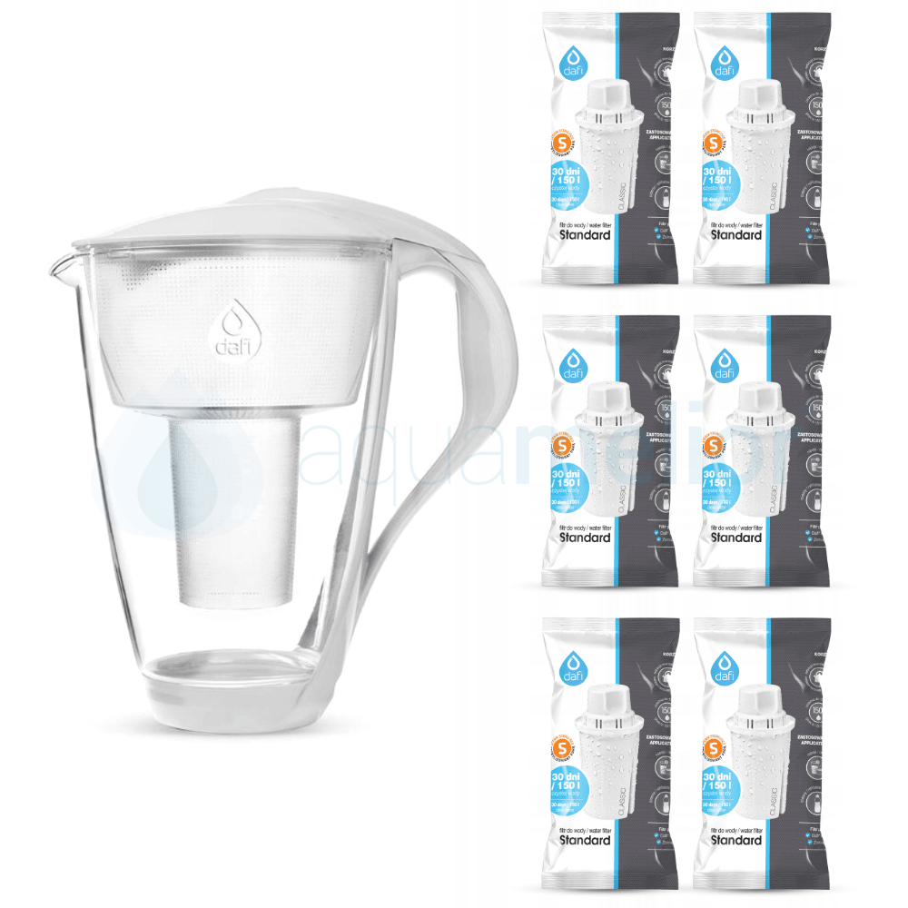 Szklany dzbanek filtrujący Dafi Crystal 2,0 l biały + 6 filtrów Dafi Classic