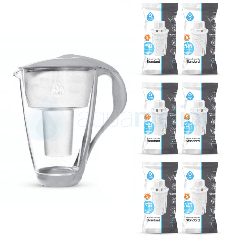 Skuteczne usuwanie szkodliwych substancji z wody kranowej sprawia, że dzbanek filtrujący Dafi Crystal 2,0l LED w kolorze stalowym pozwala na uzyskanie krystalicznie czystej wody nadającej się do bezpośredniego picia lub przyrządzania jedzenia i napojów. Dokładne oczyszczanie płynu z chloru wykorzystywanego podczas procesu uzdatniania poprawia jego smak i eliminuje ryzyko infekcji powodowanych przez spożywanie brudnej wody. Dzbanek usuwa również metale ciężkie, pestycydy, kamień oraz zabrudzenia biologiczne, dzięki czemu uzyskany płyn jest całkowicie bezpieczny i pozwala na codzienne picie w dużych ilościach. Filtry Dafi Classic stosowane w modelu Dafi Crystal 2,0l LED stalowym umożliwiają skuteczne przefiltrowanie około 100-150 litrów wody w zależności od stopnia jej zabrudzenia, a ich wymienianie powinno mieć miejsce co ok. 4 tygodnie.