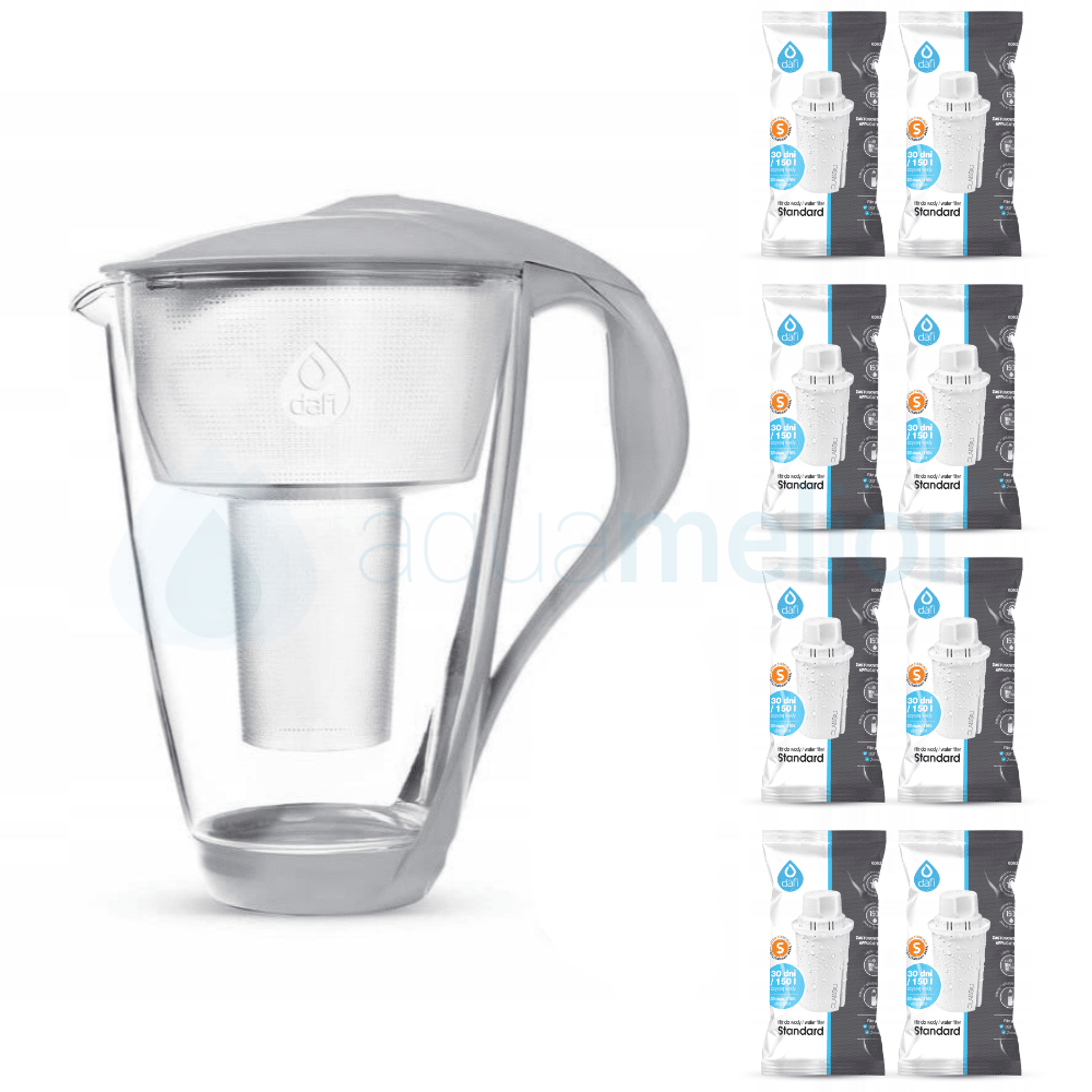 Szklany dzbanek filtrujący Dafi Crystal 2,0 l stalowy + 8 filtrami Dafi Classic